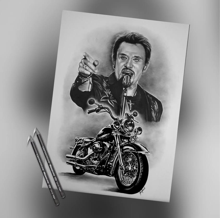 Portrait de Johnny Hallyday réalisé à la main, au graphite sur format A3.